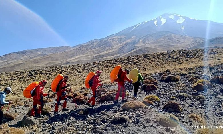 حضور و پوشش امدادی جبهه شمالی قله دماوند توسط تیم کمیته جستجو و نجات هیئت کوهنوردی و تیم واکنش سریع هلال احمر استان آذربایجان شرقی در پویش ملی پاکسازی و جمع آوری زباله های بجا مانده در چهار جبهه قله دماوند